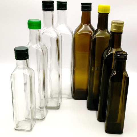 Botella de vidrio vacía para aceite de oliva, botella de vidrio transparente y cuadrada de 100ml, 150ml, 500ml, 750ml, para cocina, salsa de soja, vinagre, dispensador de aceite con tapa